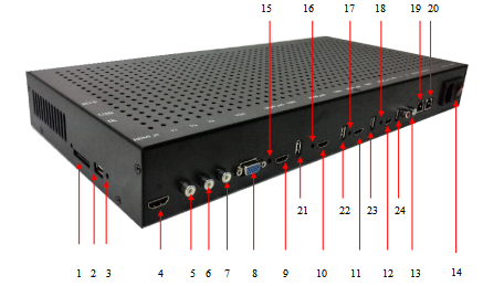 1、單臺支持4拼接HDMI接口輸出,支持20臺級聯(lián)使用;