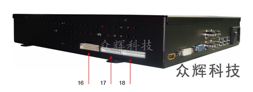 17、18 | 背光DC 24V電源接口,帶背光開關(guān)和亮度控制,采用防呆設(shè)計。 |